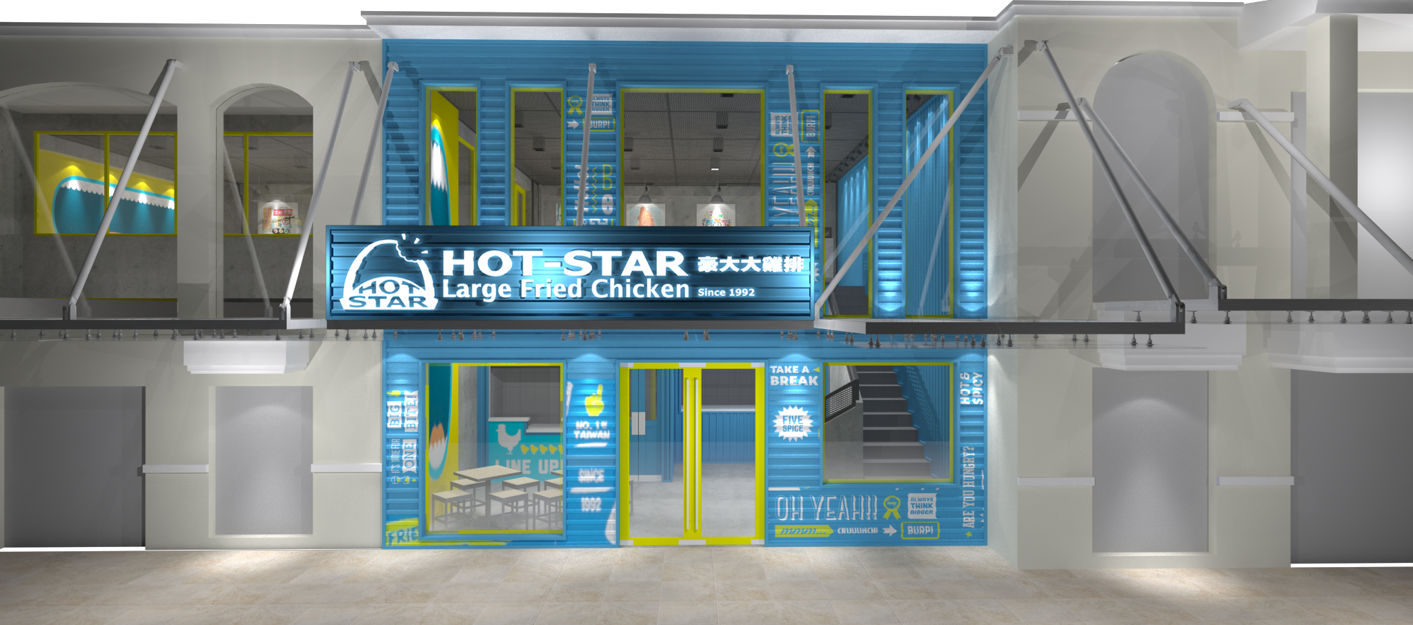 Located in the heart of Eastwood City mall, Hotstar Chicken Eastwood branch started serving nearby residents and BPO employees in the fast and lively community of Eastwood City. Not only does Hotstar Eastwood branch satisfy one’s hunger but is also a feast for the eyes because of its bold and lively wall graphics and interior architecture.